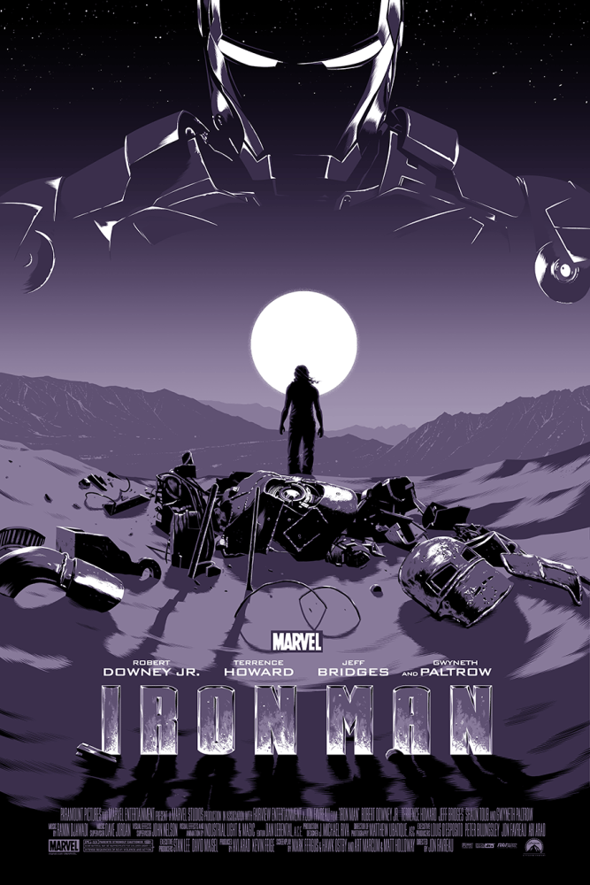 Official Iron Man variant poster for Mondo, released as part of Marvel Studios: The First Ten Years. This is an artist proof, signed in extremely limited quantities.