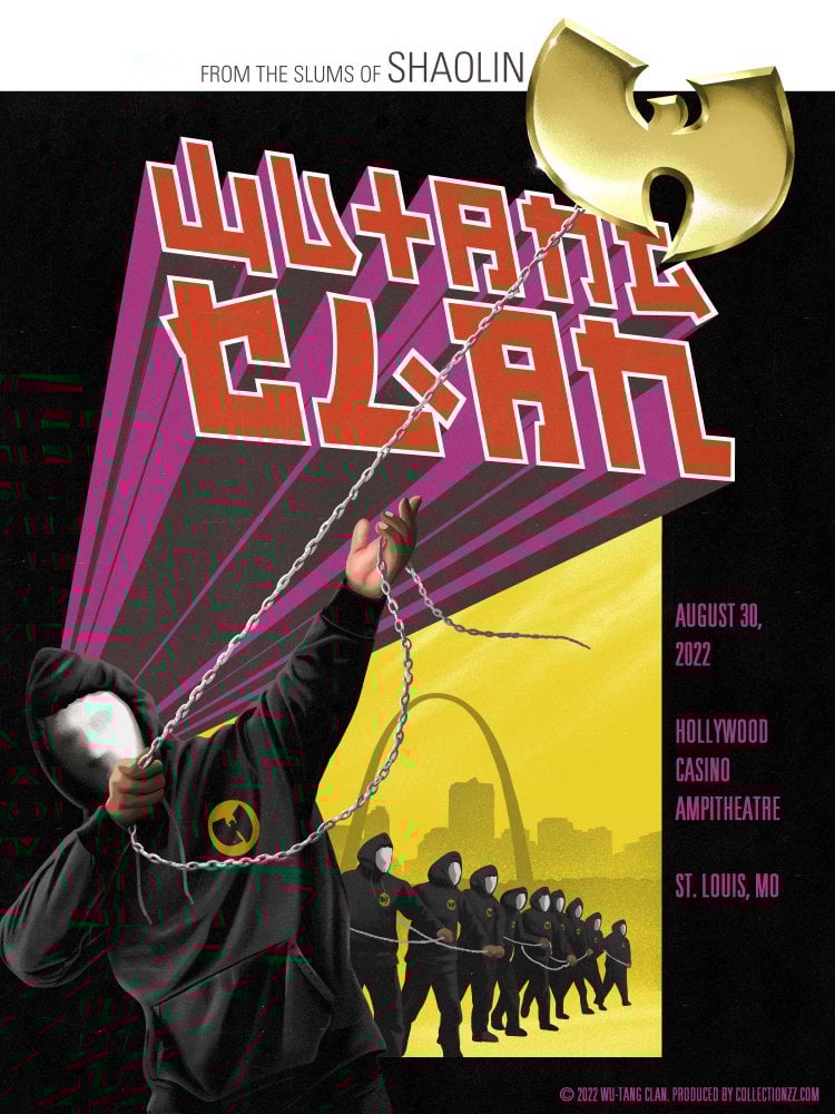 Artist Proof of the official sold out show poster for Wu-Tang Clan in St. Louis, done for the NY State of Mind Tour in 2022. Released through Collectionzz.